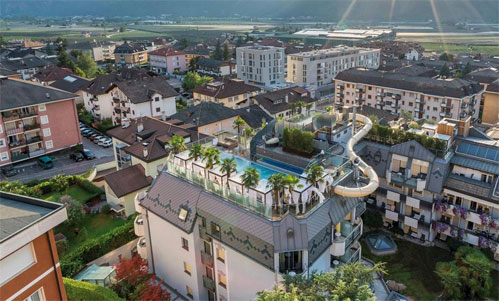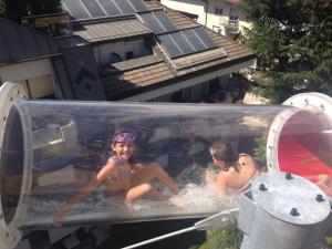 Spa: piscina meravigliosa, riscaldata adatta a famiglie. In estate piscina esterna con scivolo molto suggestivo nel vuoto sopra al tetto dell'hotel!!! Per i bambini più coraggiosi una attrazione davvero unica nel suo genere... Tra le dotazioni del centro benessere anche una sauna family con temperatura di 70°.